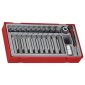 TTTHQ62 – 62 Piece T-Handle Socket And Bits Set New design T handle bits driver. Regular 6 point 1/4 drive sockets and TX-E sockets. Includes accessories and 25mm regular bits covering all the most commonly used sizes in one set. Supplied in the unique Teng Tools TC tray for use on its own or as part of the Teng Tools tool control system.